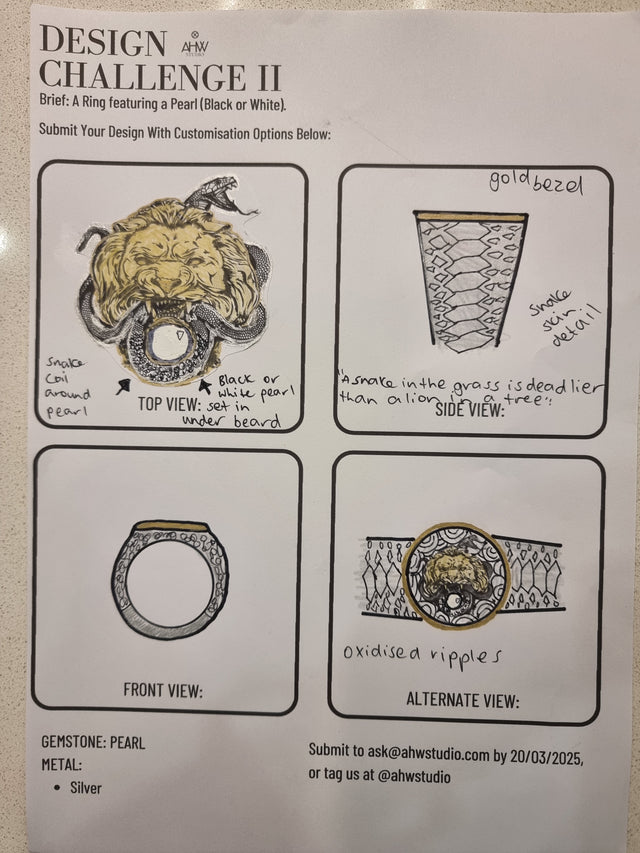 'Gladius' was the winner of the first Design Challenge. Submitted by Erik Ly, the challenge was focused on creating a ring inspired by Gladiator II.